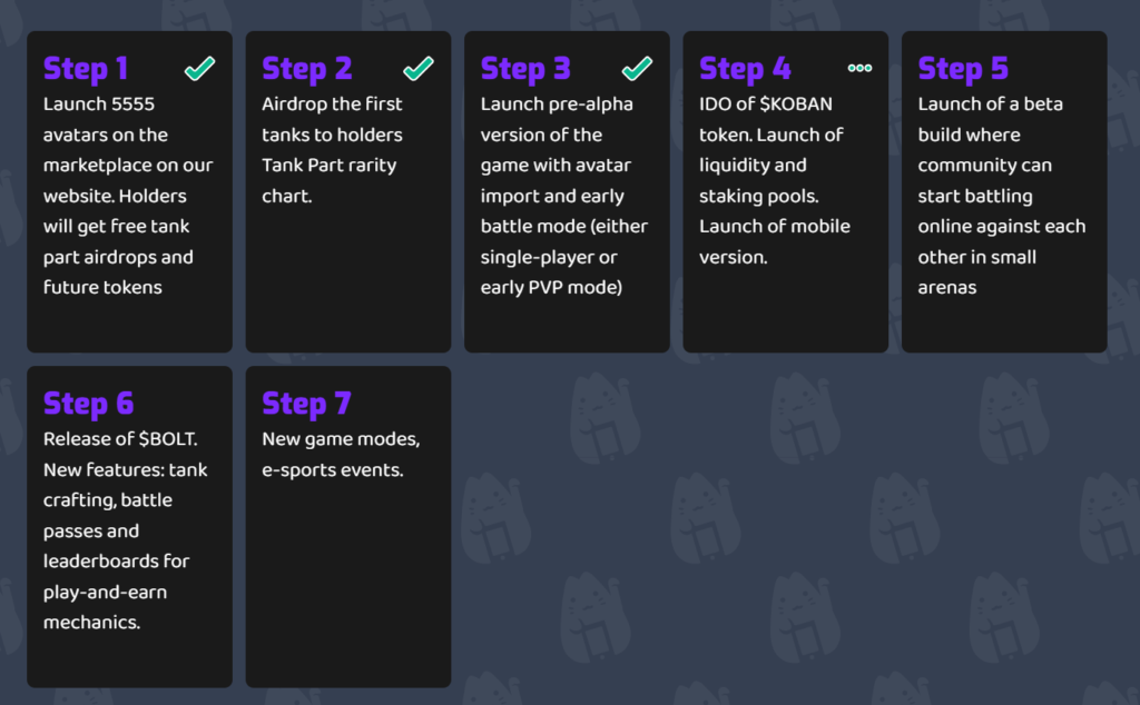 - アバターのローンチ: 5,555体のアバターをマーケットプレイスで販売。ホルダーには無料のタンクパーツのエアドロップや将来のトークンが提供されます。